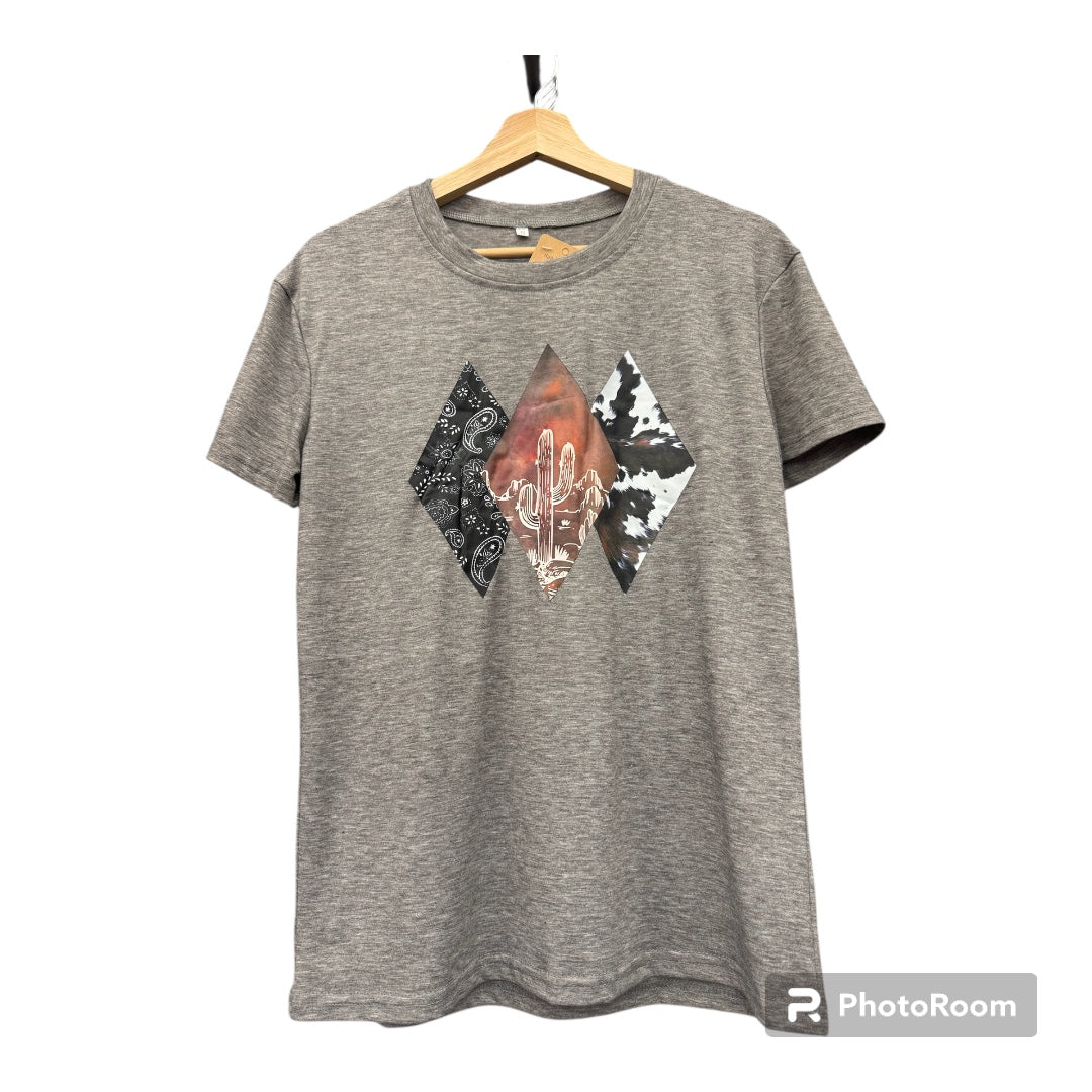 Short Sleeve T-Shirt Grey Cactus- Adult Small