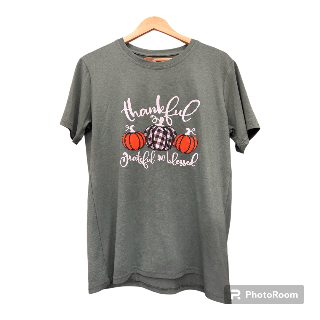 Short Sleeve T-Shirt Thankful, Grateful, and blessed- Adult Med